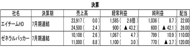 (注)単位は百万円、%。配当は円。かっこ内は前期比増減率。▲はマイナス。上段は前期実績、下段は今期見通し。社名の後のHDはホールディングスの略