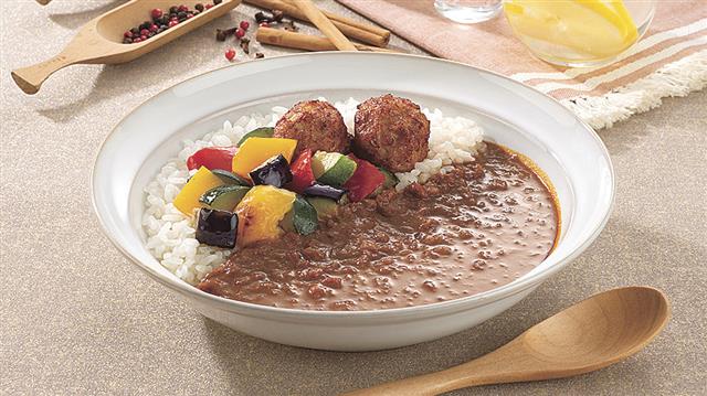 野菜がたっぷり入ったオリジナルカレーの盛り付けイメージ