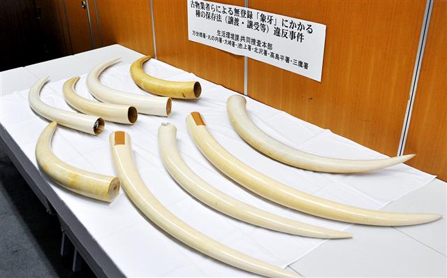 国内の違法取引事件で警視庁が押収した象牙。日本の国内市場が国際的に注目されている=2017年8月、警視庁万世橋署