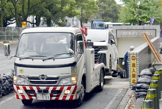 浸水車両の搬出作業開始 四日市の地下駐車場
