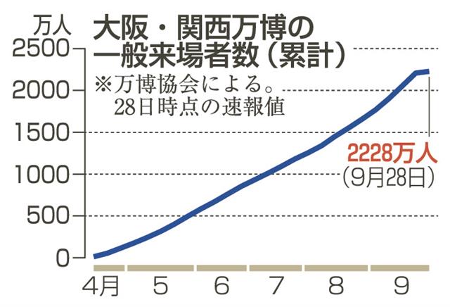 日本国際博覧会協会(万博協会)は29日、大阪・関西万博の28日時点の一般来場者数が速報値で2228...