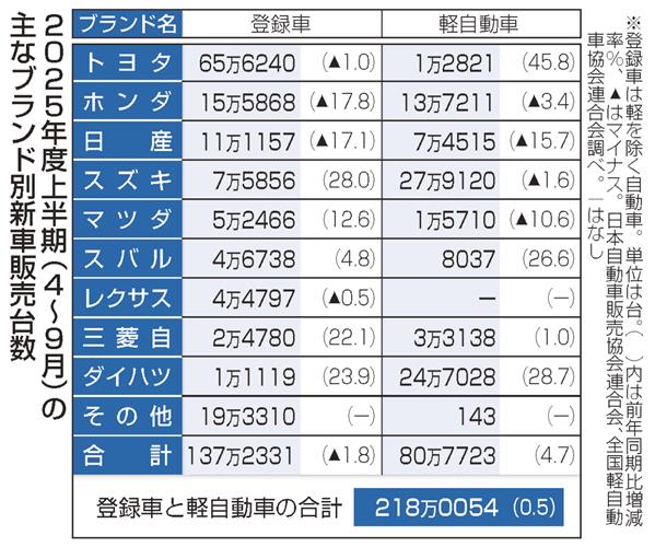 日本自動車販売協会連合会が1日発表した2025年度上半期(4~9月)の新車販売台数によると、日産自...