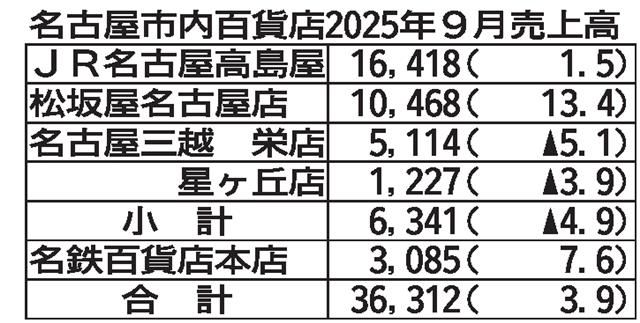 名古屋市内百貨店 9月売上高は3社増収 催事で食品好調