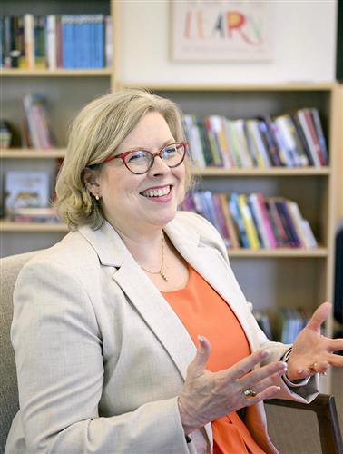 「ブリッジ・メドウズ」のシューバートCEO。「引っ越した里親家庭の子どもが、エルダーに会いに戻ってくることもある」と話す=ポートランド(撮影・鍋島明子、共同)