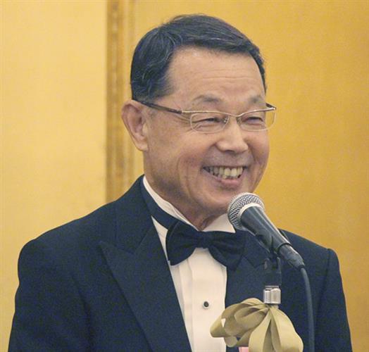 【刈谷】今年春の叙勲で旭日小綬章を受章した安城商工会議所会頭の沓名俊裕氏(東祥会長)を祝う会が、安...
