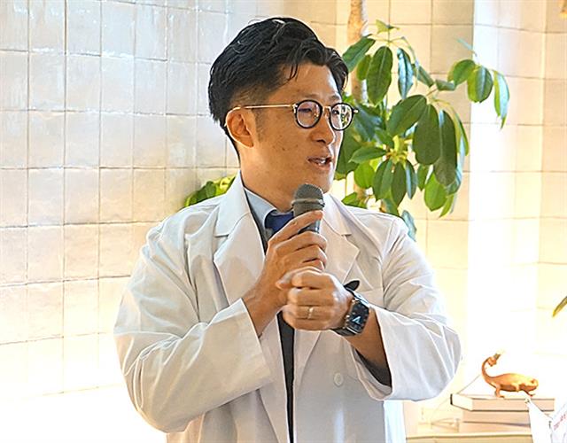 あいさつする鬼頭会長