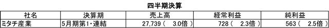 四半期決算 ミタチ産業