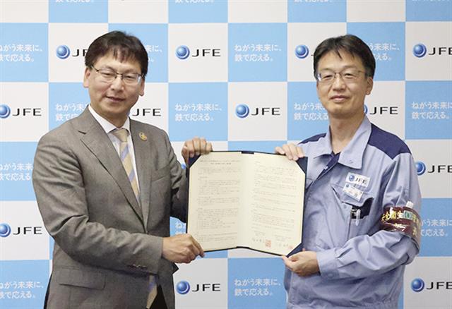 【半田】日本福祉大学工学部(半田市)とJFEスチール知多製造所(同)は1日、教育・研究に関する連携協定を締結した。知多製造所内にあるビオトープを拠点に、同大学研究者が年3回程度、同社の生物多様性保全活動への専門的助言を行うとともに、学生にビオトープの見学や調査の機会を提供する。