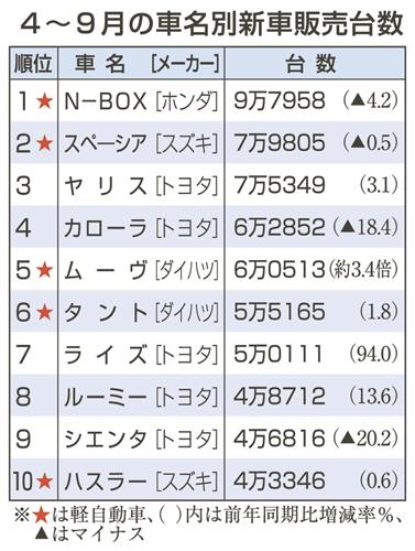上半期N―BOX首位 国内新車販売、4年連続で