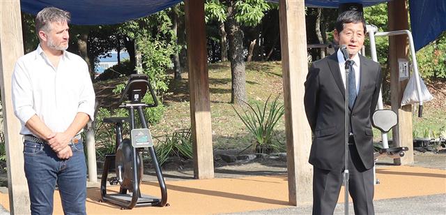 市民の健康増進に役立てて 遊具・健康器具メーカーのクレオ 「すいとぴあ江南」に エアロバイクや筋トレ機器設置