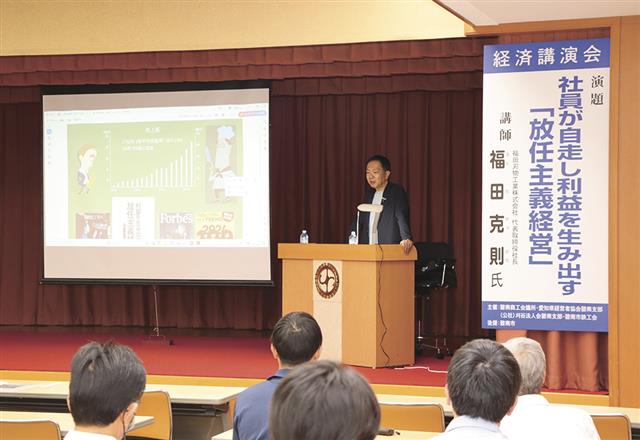 【刈谷】碧南商工会議所は、碧南市の同会議所で経済講演会を開催した。講師に福田刃物工業社長の福田克則...