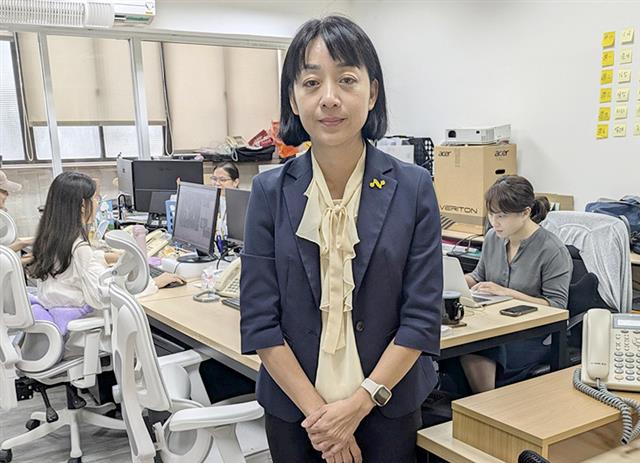 台湾の革新政党「時代力量」主席の王婉諭。3歳の娘(小灯泡)を通り魔の男に殺害されたが、死刑制度に代わる制度の確立を目指している=台北市の党本部(共同)