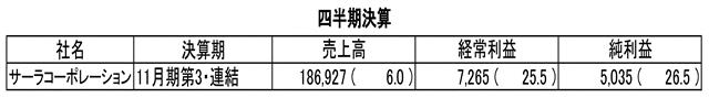 四半期決算 サーラコーポレーション