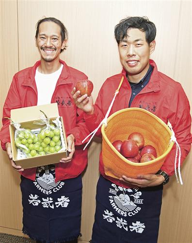長野県松川町の若手農業者の会「若武者」は18日、大府市吉田町のJAあぐりタウンげんきの郷で果物など...