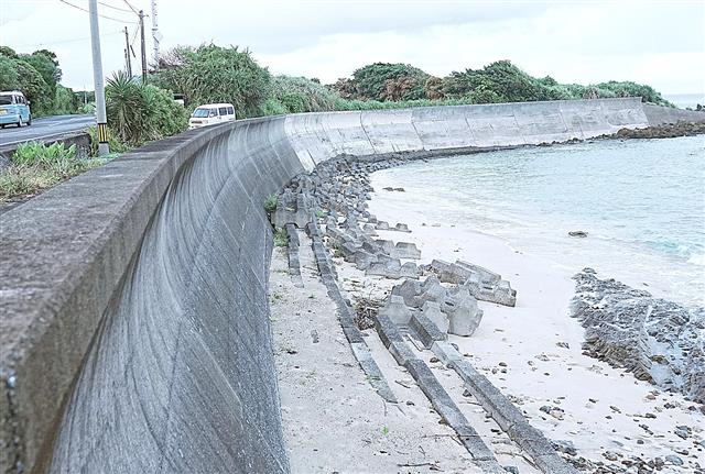 海岸に建設されたコンクリート護岸。海岸の環境劣化の原因になると指摘されている=9月、鹿児島県奄美大島