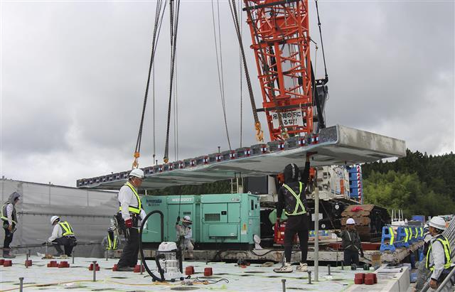 磐越自動車道で行われている老朽化に伴う大規模な更新工事=9月11日、福島県小野町