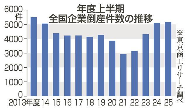 全国倒産、12年ぶり高水準 25年度上半期、人手不足や物価高