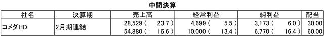 【コメダホールディングス】国内事業が伸びたほか、シンガポール企業の連...