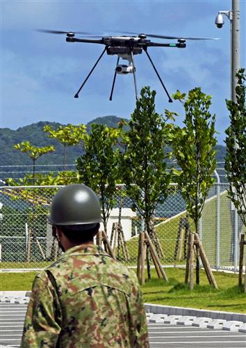 陸上自衛隊石垣駐屯地で行われた離島防衛を想定した訓練で使用されたドローン=2023年10月、沖縄県・石垣島