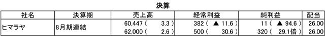 決算詳報 <前8月期> ヒマラヤ <8月中間> カネ美食品