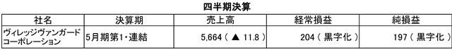 四半期決算 ヴィレッジヴァンガードコーポレーション