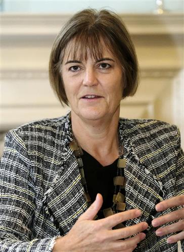 インタビューに答える駐日英国大使ジュリア・ロングボトム