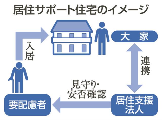 高齢者や障害者が安心して暮らせる住宅を増やそうと、NPOや不動産会社が入居者の日常生活を支援する「...