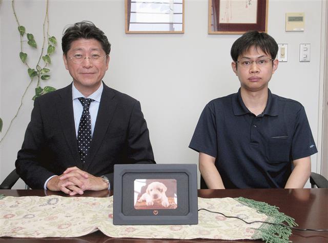 「LEDPhotoFrame」と仙台屋の近藤社長(左)