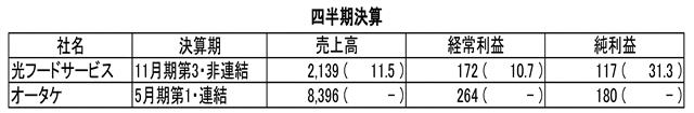 (注)単位は百万円、%。―は比較できず。かっこ内は前年同四半期比増減率