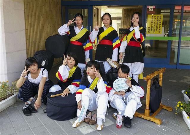 「神戸コリア教育文化センター」の民族楽器を習うプログラムに参加した子どもたち=2015年、神戸市長田区(同センター提供)