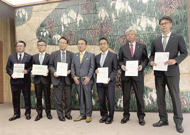 愛知県県内の経済団体や自動車ユーザー団体、労働団体の関係者は17日、名古屋市の愛知県公館を訪れ、自...