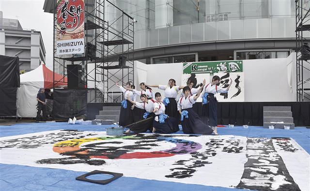 書道パフォーマンスに拍手 春日井まつりにぎわう