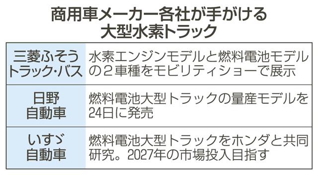 大型水素トラック開発競う 三菱ふそう、各社も注力