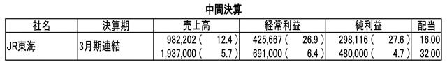 (注)単位は百万円、%。配当は円。かっこ内は前期比増減率。上段は中間期実績、下段は通期見通し。配当の下段は年間配当
