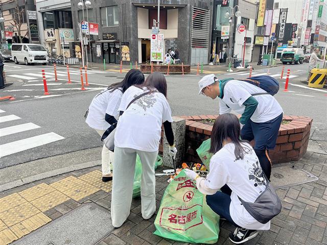 名古屋市中区錦3丁目地区で清掃する参加者ら