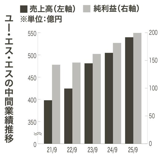オートオークション会場運営大手のユー・エス・エス(本社東海市)が11日発表した2025年4~9月期の連結純利益は、前年同期比10・0%増の199億5100万円で過去最高を更新した。新車市場回復を受けた下取り中古車の増加で、出品、成約台数とも伸長した。通期の出品、成約台数見通しを上積みし、業績予想を上方修正した。