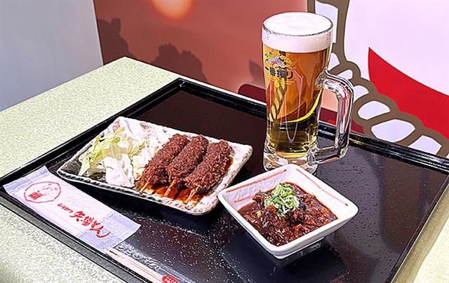 みそだれにつけたロース串カツ(3本、600円)やみそおでん(3種盛り、900円)などのほか、昼はランチメニューを2種類(各1500円)用意する。夜は「ちょい呑みセット」(1400円)、「昔の矢場とんセット」(2千円)を提供し、同駅を利用するサラリーマンらの「ちょっと一杯需要」を取り込む。