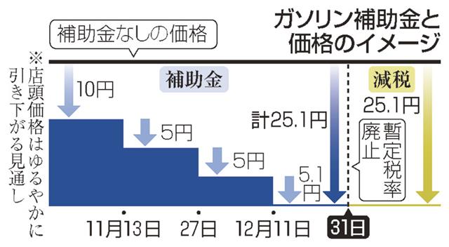 ガソリン補助金きょう増額 1リットル5円 暫定税率廃止へ移行措置