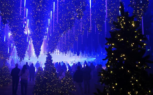 ドイツ・ベルリンのスケートリンク。たくさんのツリーと電飾でクリスマスの装いです。(ロイター=共同)...