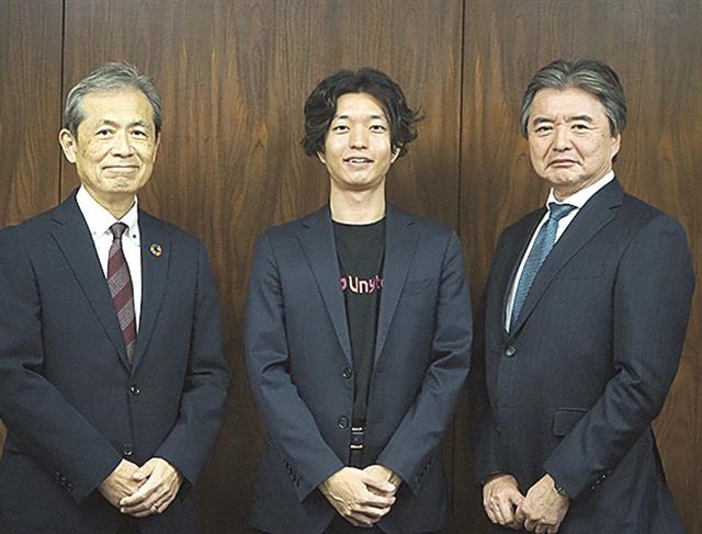 ブロックチェーン使った新規事業生み出す(左から電算システムHDの小林社長、Unyteの上泉社長、電算システムの高橋社長)