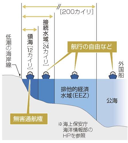 海洋法を続けます。船は沿岸国の領海を除く、公海などを自由に航行できるほか、領海も沿岸国の利益を害さ...