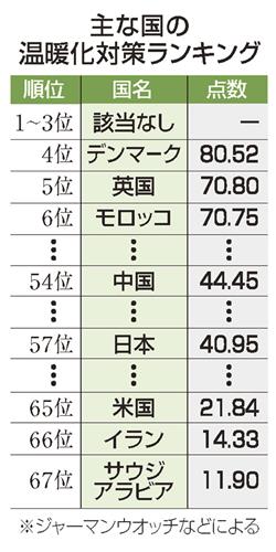 温暖化対策、日本は57位 ドイツの環境シンクタンク 温室ガス削減「不十分」