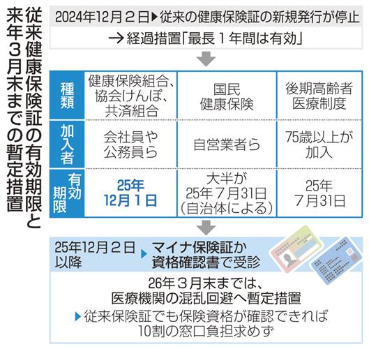 会社員や公務員らの健康保険証の有効期限が12月1日に迫っている。自営業者の多くと75歳以上の保険証...