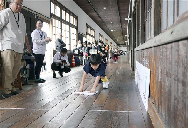 日本一長~い廊下で雑巾がけ レース開催、愛媛の博物館