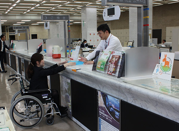 今年3月には接遇の資格「サービス・ケア・アテンダント」を行員30人が取得しました。身体が不自由な方だけでなく、困っているすべての人に満足してもらえるサービスを提供するための取り組みです。今年度中に全営業店に資格取得者の配置を目指しています。