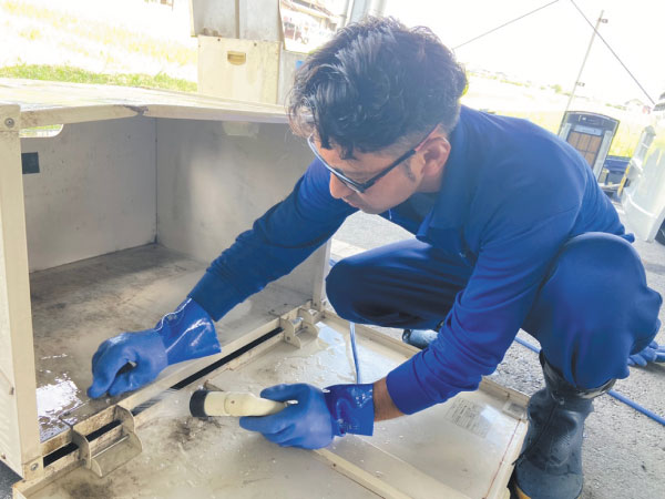 一般廃棄物処理部門では、飲食店や福祉施設などお客様の廃棄物置き場をボランティアで清掃する「パワースポット化活動」を展開しています。2017年に社員が自主的に始めた活動で、毎月1回実施し、これまでに52回を数えます。お客様の笑顔、「ありがとう」の一言に、社員の働きがいが高まっています。