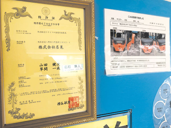 産業廃棄物処理部門では、交通事故の少ない地域社会の実現を目指す一環として、収集運搬車のパンクを防ぐ「金属片収集具」を開発し、特許を取得しました。廃棄物処理場内でタイヤに釘が刺さり、市中を走行中にバーストするのを阻止するのが狙いで、業界全体に広げていきたいと考えています。